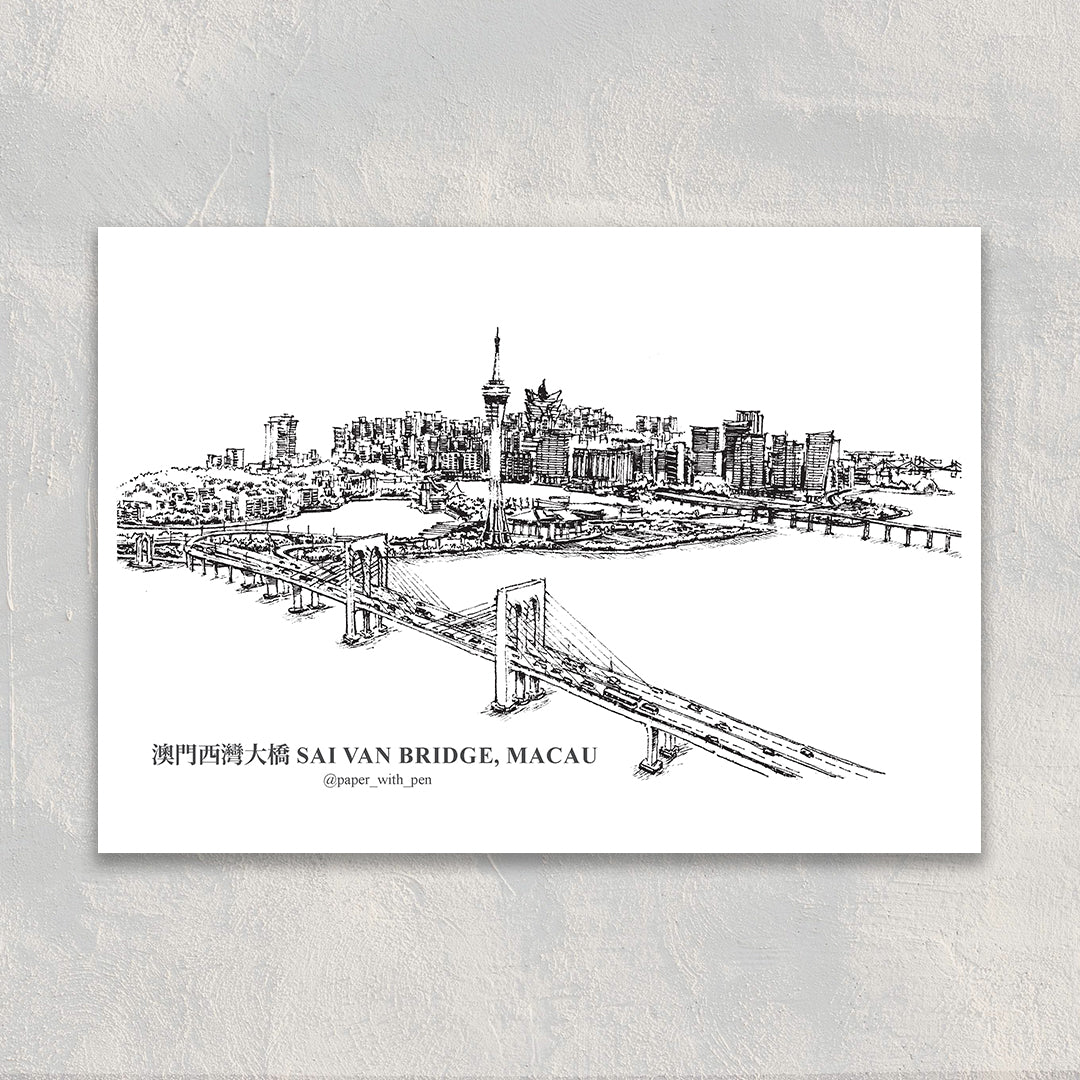A6 Hand-Drawn Postcard : Sai Van Bridge, Macau