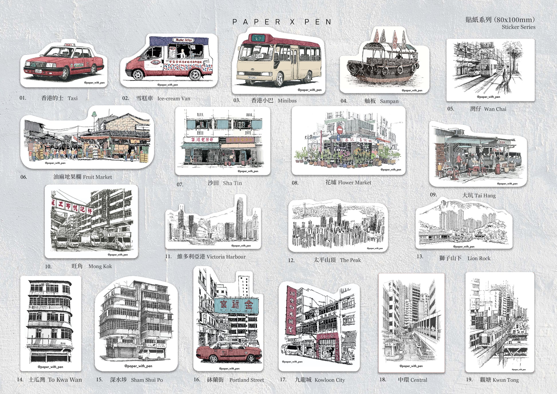 Sticker Combo Set: Hong Kong Transport / Streetscape (19pcs)